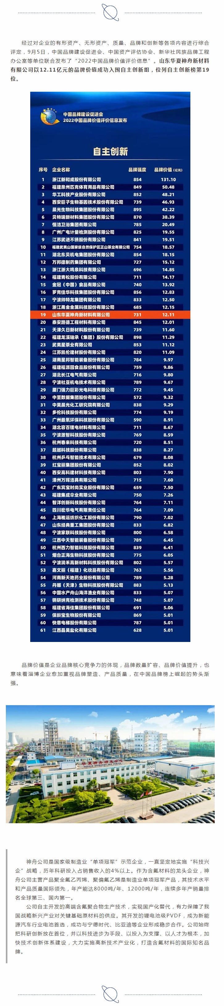 神舟公司入圍2022中國品牌價值榜